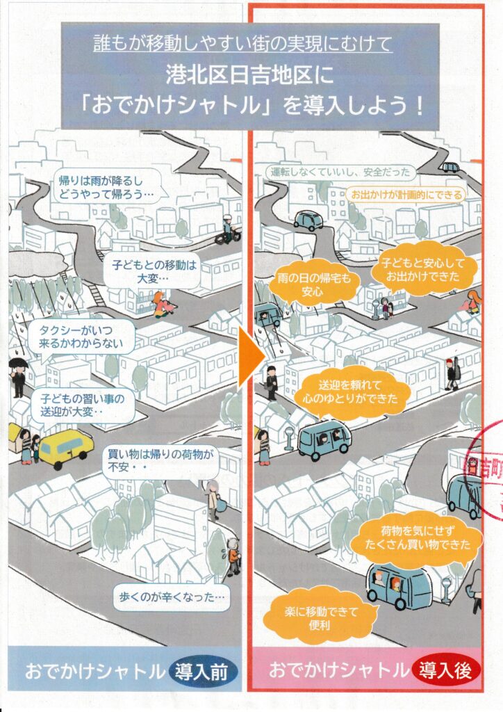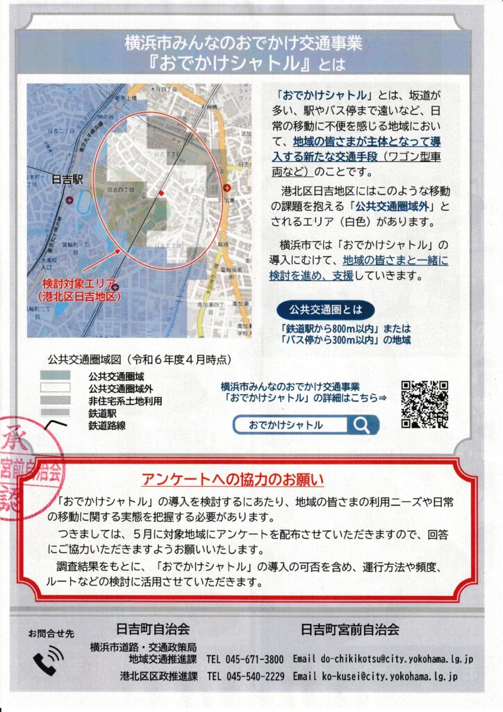 1 おでかけシャトルアンケート調査について ワゴン型車両バス(日吉5丁目)①4月中に配布(対象地区)②回答期限 R8年5月31日