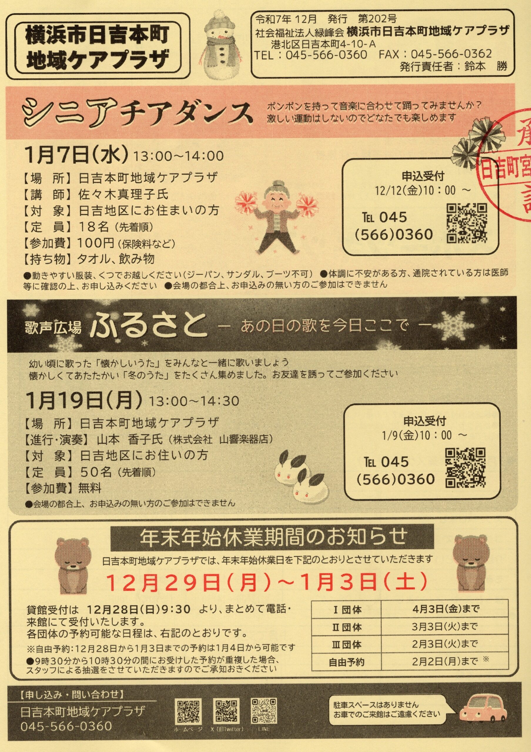 ・12月6日(土)9時〜大掃除、備蓄庫 18時〜忘年会 センザン(1人6千円)
