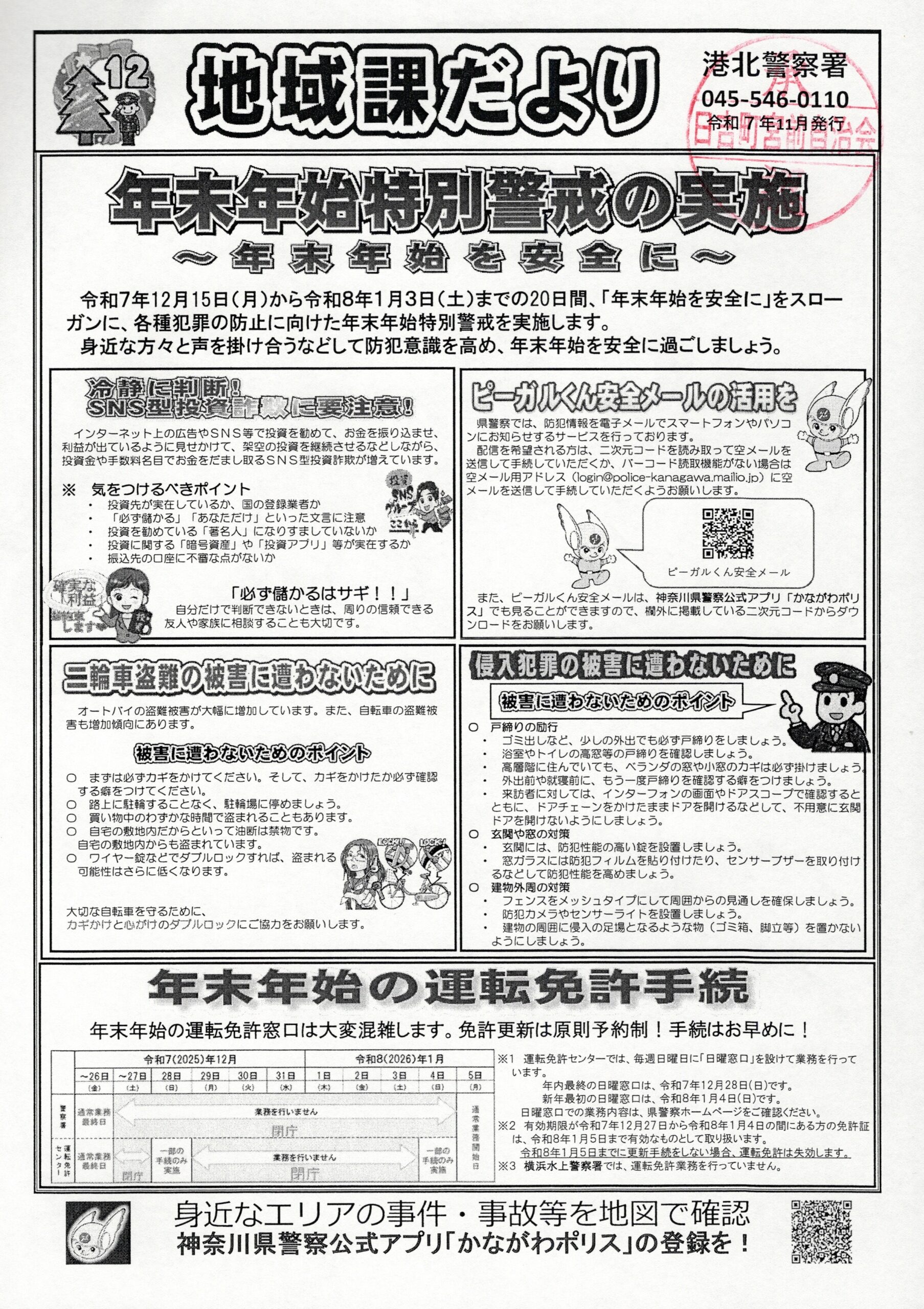 8 防犯パトロール:11/13 井上、細谷 11/27 井上、松井 交流カフェ:安齋