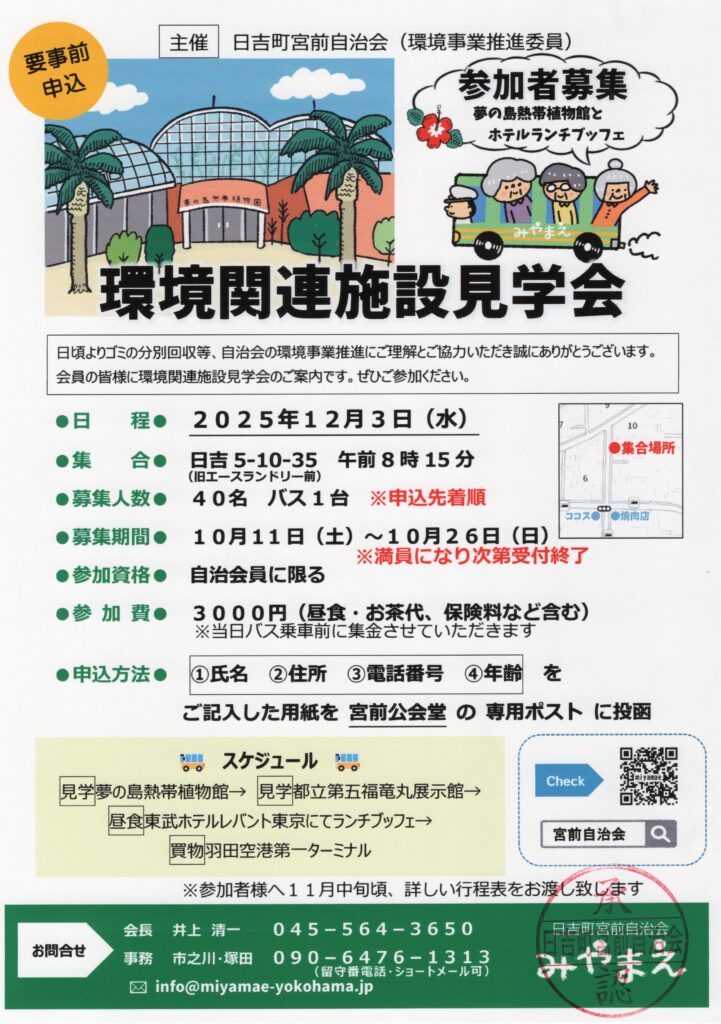 3 環境事業施設見学会のご案内 ・12月3日(水) ・担当:三役 ・募集期間:10月11日〜10月26日(日)・満員になり次第終了(公会堂ポストインにて)