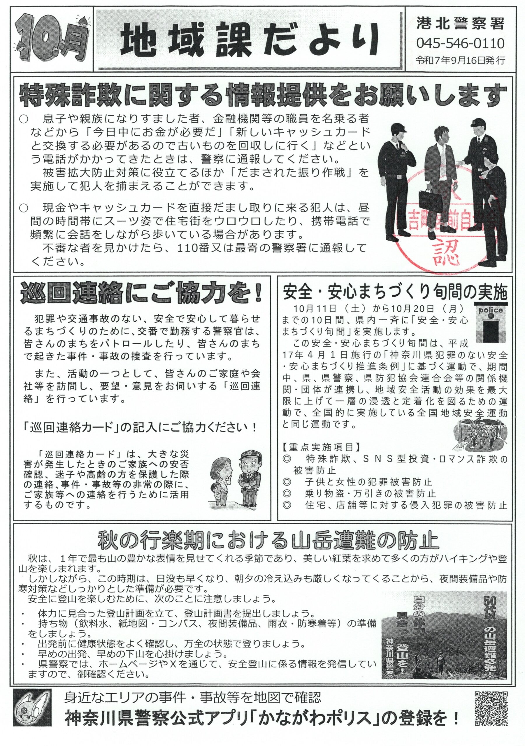 8 防犯パトロール 10/9 井上 /23 井上 交流カフェ 10/14細谷