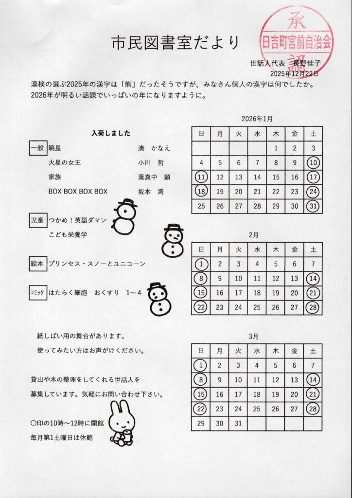 2026年1月7日(水)宮前公会堂 19時00分〜