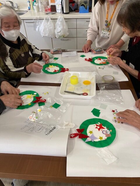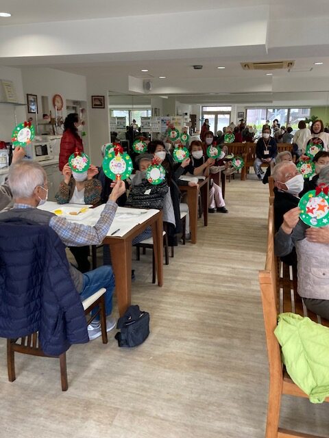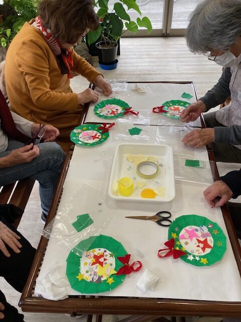 宮前交流カフェvol.64 コメントを残す 2025年11月11日横浜日吉プラージュにて宮前交流カフェを開催しました♪ 今日はクリスマスの飾りと言う事で紙皿を使ってクリスマスリースを作ります 緑の折り紙を周りに貼っていきます 次にリボンを付けます 星の子とサンタを貼ります シールで飾り付けです 出来上がりました 皆さん力作です 家に飾りますと話していました 次は12月9日です クリスマスなので皆さんでビンゴをします 皆さんの参加お待ちしてます